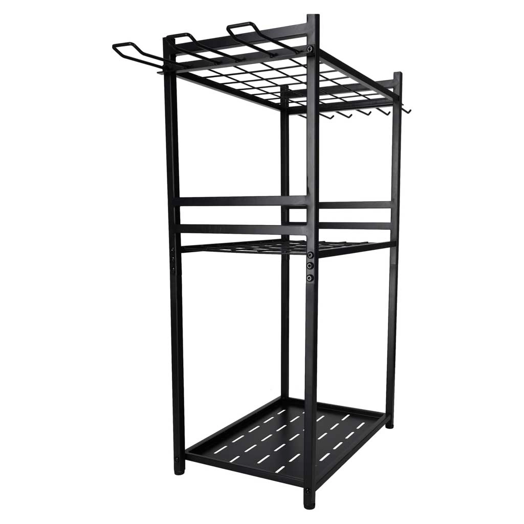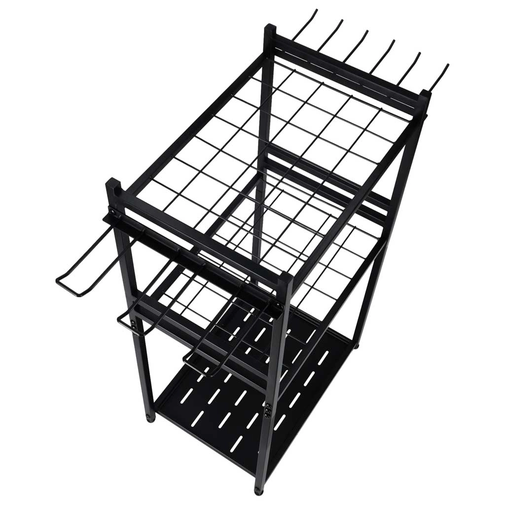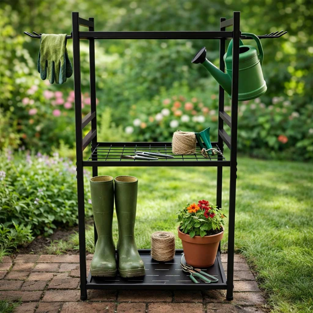 Udržujte zahradu, garáž i dílnu perfektně uspořádané s kovovým stojanem LUARO. Díky třem úrovním polic a bočním háčkům získáte přehledné uložení nářadí, rychlý přístup a stabilní, odolnou konstrukci pro každodenní používání.