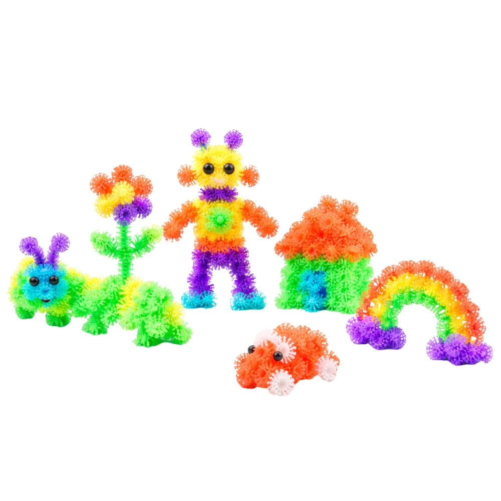 Objevte nekonečné možnosti tvoření s touto kreativní stavebnicí z ježatých kuliček. Díky snadnému zacvakávání a rozpojování, měkké pružné textuře a bohaté paletě barev děti postaví postavičky, zvířata, vozidla i fantazijní modely. Součástí jsou i dekorativní doplňky (oči, nosíky, ruce, kloboučky) a praktický box s víkem pro přenášení a ukládání. Hra rozvíjí jemnou motoriku, představivost, soustředění a logické myšlení.