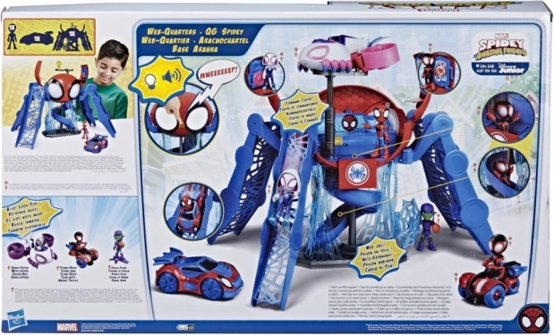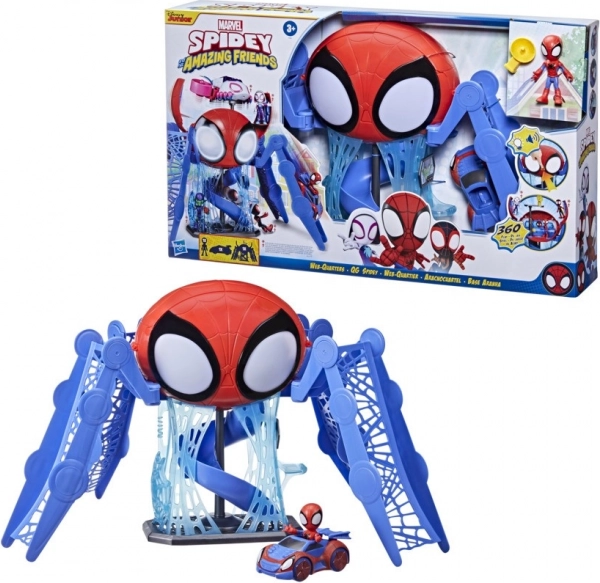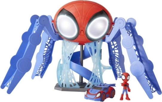 Přeneste domů centrálu malých superhrdinů: Pavoučí základnu, kterou děti znají z každé epizody seriálu Spidey a jeho úžasní přátelé. Velká pavoučí konstrukce v červeno-modrém designu nabízí spoustu herních možností – od rychlých sjezdů vozidel po tajné mise v laboratoři.
