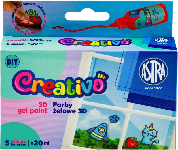 Objevte zábavu z tvorby sady Astra Creativo – barvy na gelové samolepky v praktických tubách 5×20 ml. Snadno s nimi vytvoříte pružné samolepky na sklo, plast, zrcadla i porcelán. Vyznačují se vysokou kvalitou, snadným použitím a souladem s evropskými normami, takže jsou ideální pro DIY projekty, tvořivé dílny i výtvarné aktivity s dětmi.