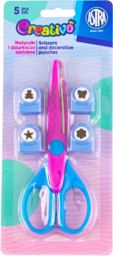 Sada ASTRA CREATIVO spojuje praktičnost a inspiraci pro všechny milovníky papírového tvoření. Díky kombinaci kvalitních nůžek a čtyř děrovaček s motivy o velikosti 10 mm snadno vytvoříte působivé detaily na kartonu, papíru nebo scrapbookových projektech.