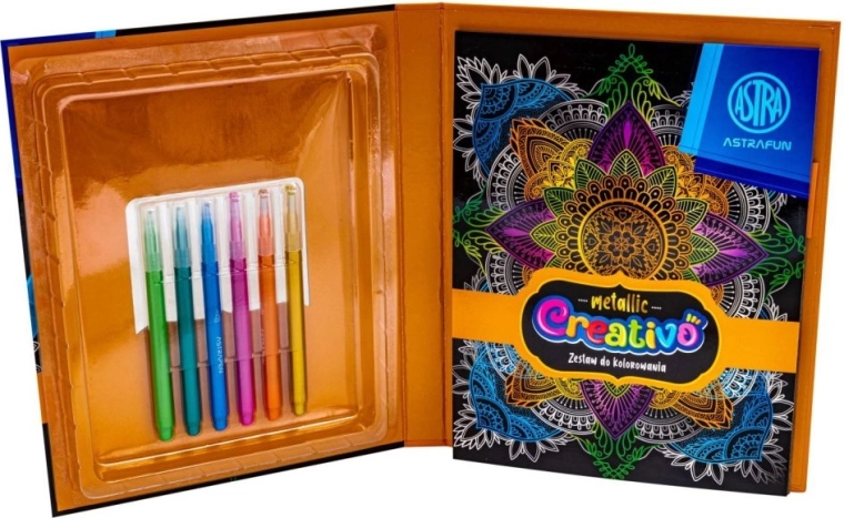 Objevte radost z vybarvování s metalickým efektem. Vybarvovací set ASTRA CREATIVO kombinuje kvalitní metalické barvy s pečlivě připravenými motivy, díky nimž je tvoření snadné a velmi uspokojující. Lesklé odstíny dodají každému obrázku jedinečný vzhled a výraznost.