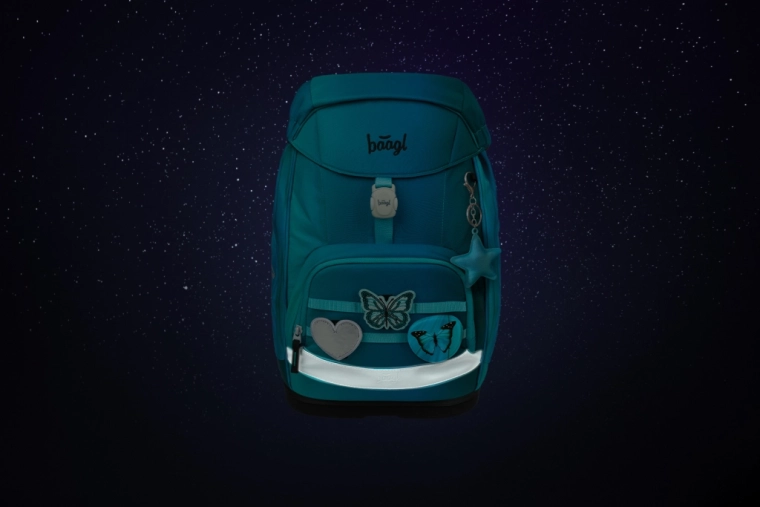 Design oživují vyměnitelné odznáčky (Baaglies) a výrazné reflexní prvky pro lepší viditelnost. Materiál je recyklovaný, voděodolný a splňuje standard Global Recycled Standard (GRS) – šetrný k přírodě i ověřený z hlediska sociálních a ekologických požadavků.