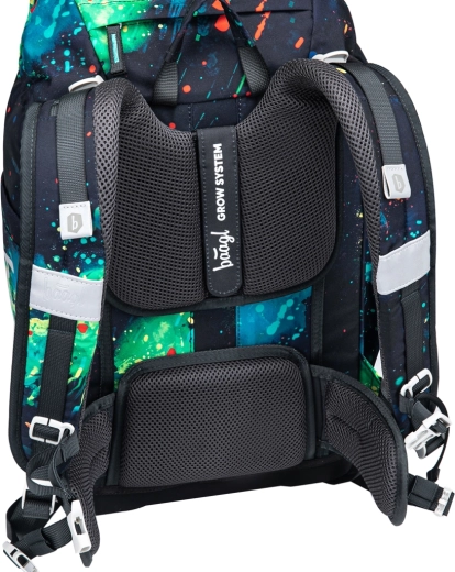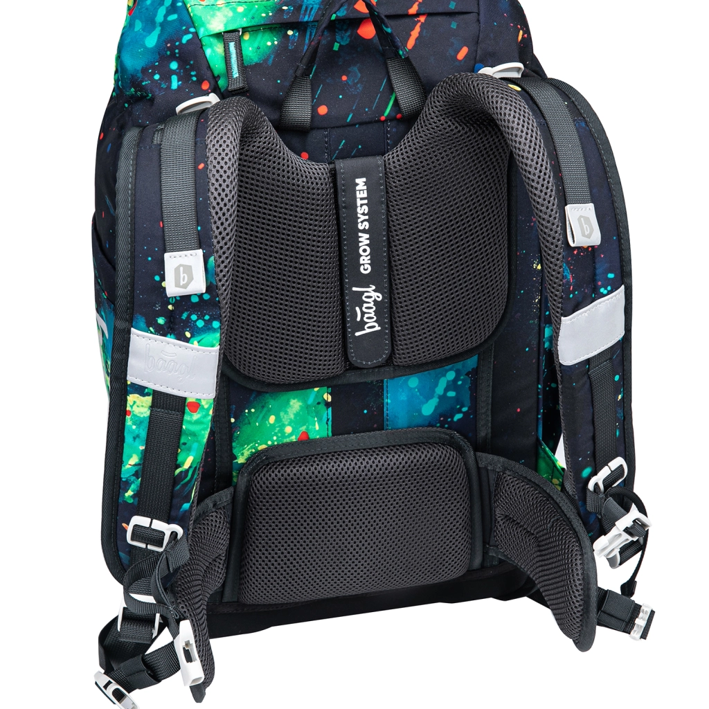 Školní batoh BAAGL Airy Plus Chill GRS kombinuje nízkou hmotnost, ergonomii a promyšlenou organizaci. Integrovaná hliníková výztuž a anatomicky tvarovaná záda podporují zdravé držení těla, zatímco rostoucí zádový systém Grow se přizpůsobí třem výškovým úrovním a roste společně s dítětem. Díky prodyšným ramenním popruhům, hrudnímu a odnímatelnému bedernímu popruhu se váha rovnoměrně rozloží a batoh drží stabilně při chůzi i běhu.