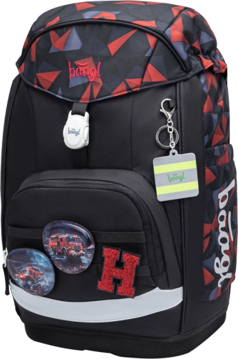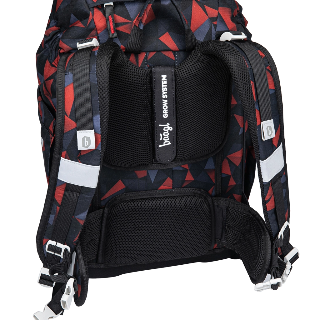 Batoh je vyroben z recyklovaného, voděodolného materiálu a splňuje standard GRS. Bezpečnost zvyšují reflexní prvky, zatímco vyměnitelné odznáčky Baaglies umožní dětem vyjádřit vlastní styl. Rostoucí zádový systém Grow nabízí tři velikosti, takže batoh poroste spolu s dítětem.