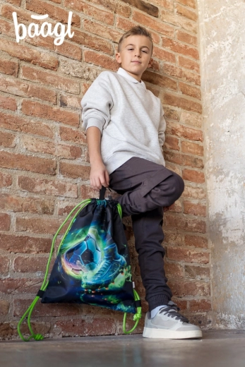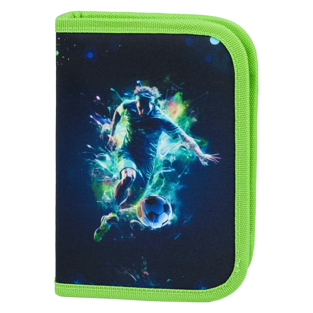 Kompletní školní set BAAGL Airy Plus s fotbalovým motivem zahrnuje ergonomický batoh, jednopatrový penál, sáček na obuv, ochrannou zástěru/přesník a peněženku na krk. Batoh s anatomicky tvarovanými zády, rostoucím zádovým systémem Grow a hmotností pod 1200 g je ideální od 1. třídy. Nechybí termo kapsa na svačinu, voděodolné recyklované materiály, reflexní prvky a zábavné vyměnitelné odznáčky. Penál s kvalitním zipem YKK a elastickými úchyty udrží vše přehledně, sáček s karabinkou snadno připnete k aktovce a peněženka na krk bezpečně schová drobnosti.