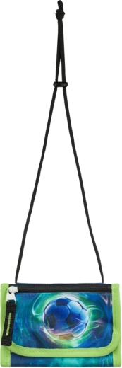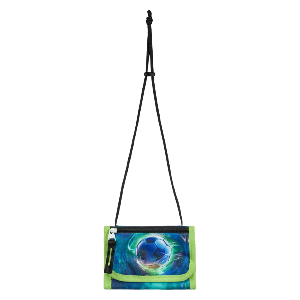 Peněženka na krk s nastavitelnou šňůrkou chrání kapesné i doklady. Zipová kapsa a klopa na suchý zip, sportovní fotbalový design ladící se setem.