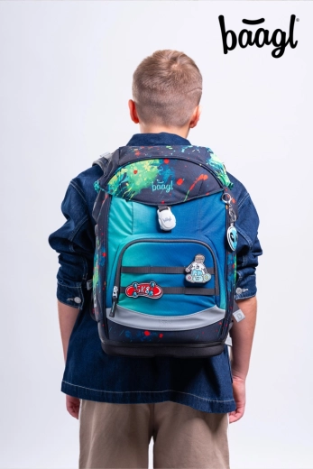 Školní set BAAGL Airy Plus Chill je navržen pro děti od 1. třídy. Ergonomický batoh s pevným dnem a integrovanou hliníkovou výztuží chrání záda, zatímco rostoucí zádový systém GROW umožňuje nastavení na tři velikosti – batoh tak „roste“ spolu s dítětem. Víko s magnetickým zapínáním se samo zacvakne a usnadní každodenní používání.