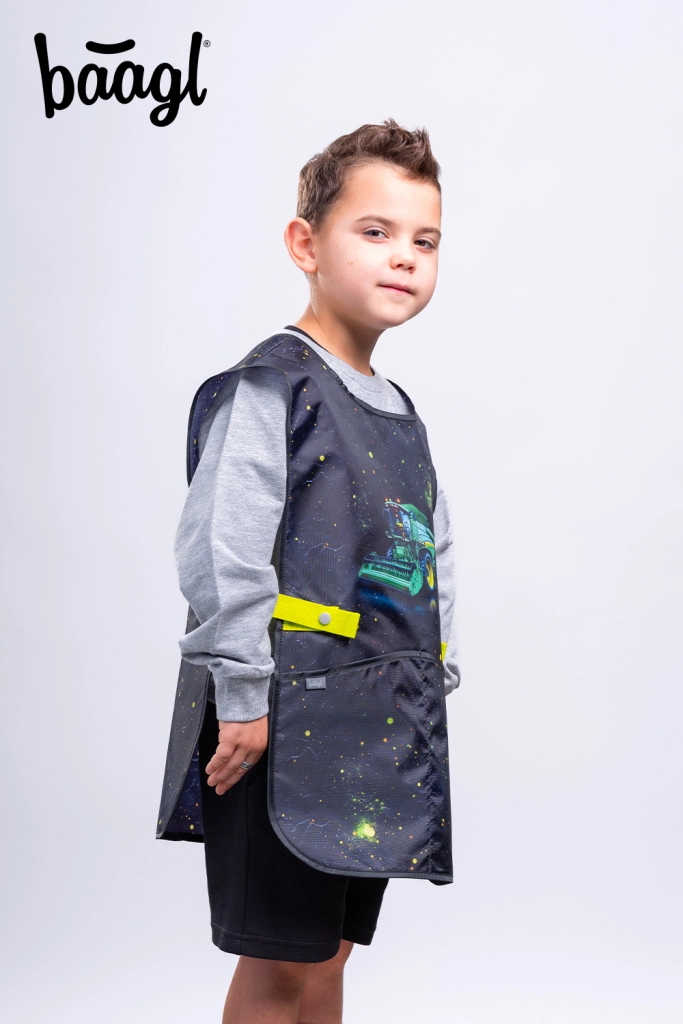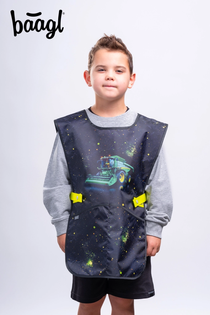 Praktická dětská zástěra BAAGL s motivem TRAKTOR je ideální pro výtvarnou výchovu, pracovní činnosti i volnočasové kroužky. Nabízí omyvatelný materiál, dvě prostorné kapsy a udržitelnou certifikaci GRS pro šetrnost k přírodě.