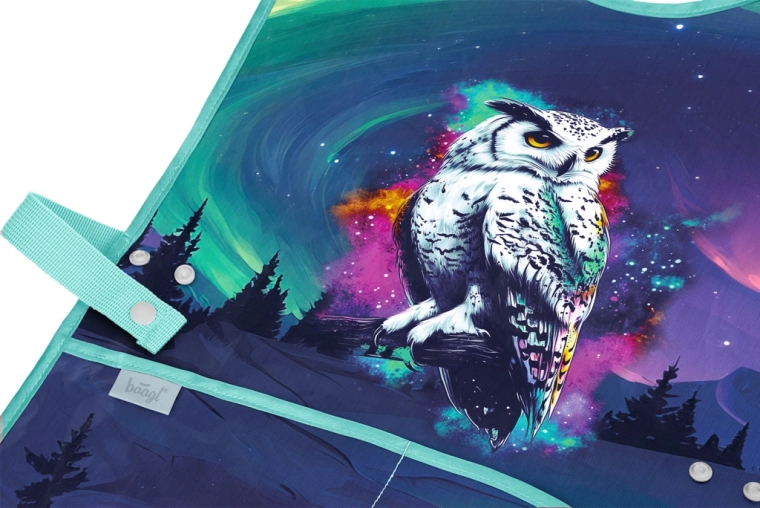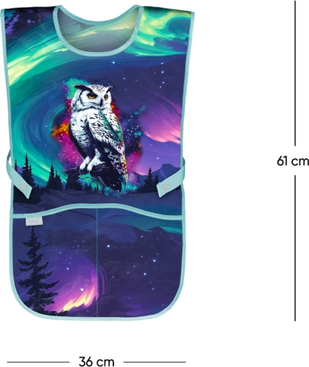 Praktická dětská zástěra BAAGL Aurora chrání oblečení při malování, vaření i tvoření. Má omyvatelný materiál, dvě přední kapsy na pomůcky a je vyrobena s ohledem na přírodu díky certifikaci Global Recycled Standard (GRS).