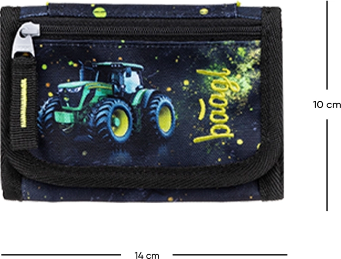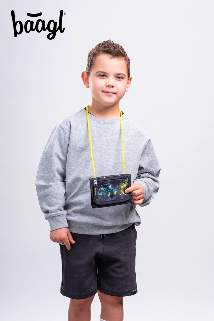 Hledáte lehkou a bezpečnou peněženku pro děti? Tato krční peněženka BAAGL s motivem traktoru umožní nosit vše důležité vždy po ruce – od drobných přes čip na oběd až po klíček od skříňky. Díky nastavitelnému popruhu s bezpečnostní pojistkou se pohodlně přizpůsobí a při zachycení se uvolní.