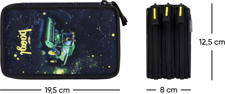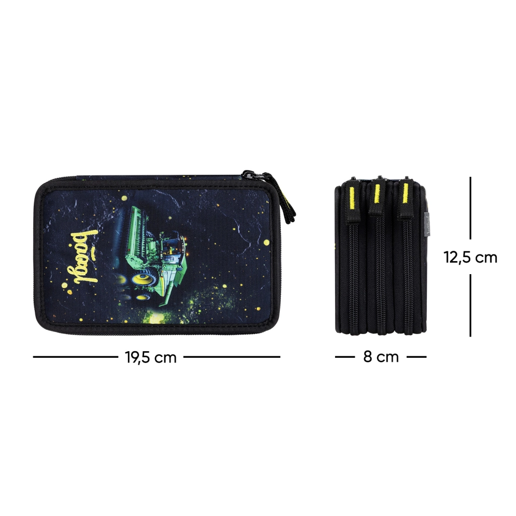 Udržte všechny své psací potřeby přehledně na jednom místě. Třípatrový penál BAAGL Traktor GRS nabízí promyšlené členění a dostatek místa pro pastelky, fixy, pera i další drobnosti. Zesílený hřbet usnadňuje manipulaci při zavírání a kvalitní zipy YKK zaručují dlouhou životnost.
