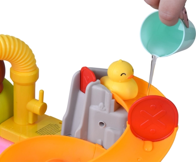 - Senzorické a vzdělávací hraní: tok vody, stříkání a nalévání rozvíjí koordinaci ruka–oko.