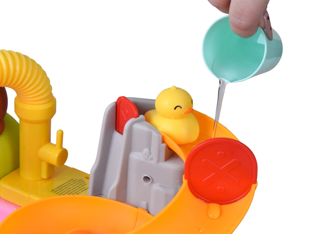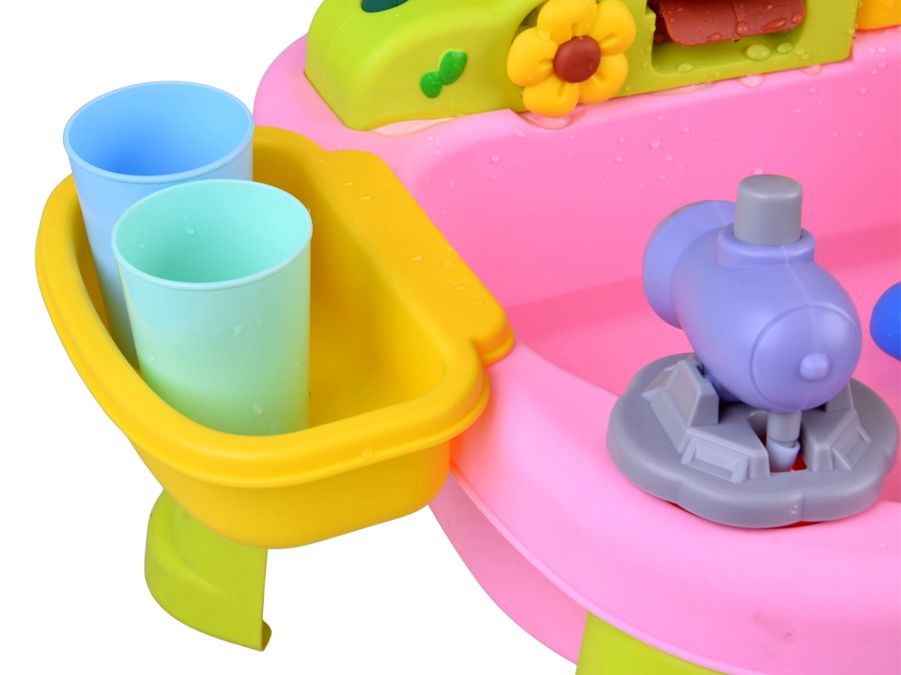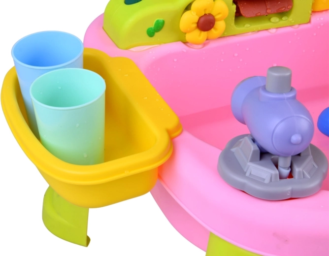 Flexibilní hadička s květinovou sprškou promění stolek v malý vodní park. Děti mohou stříkat vodu, spouštět kola a omývat hračky.