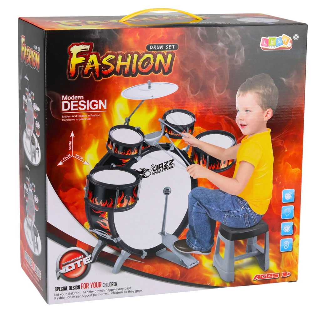 Tato barevná a realistická dětská bicí souprava věrně napodobuje skutečnou sadu bicích, takže si malí muzikanti mohou připadat jako na pódiu. Hra na bicí podporuje kreativitu, představivost a jemnou i hrubou motoriku.