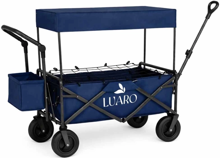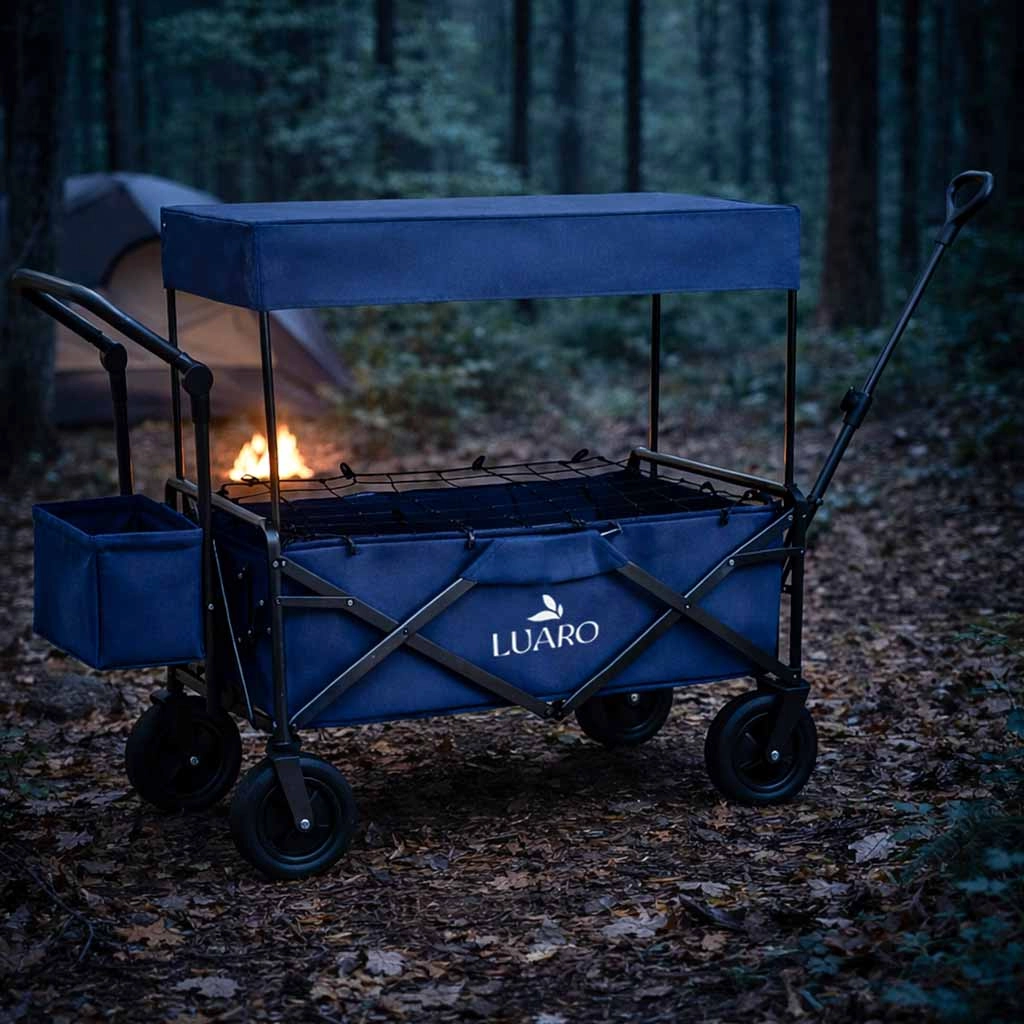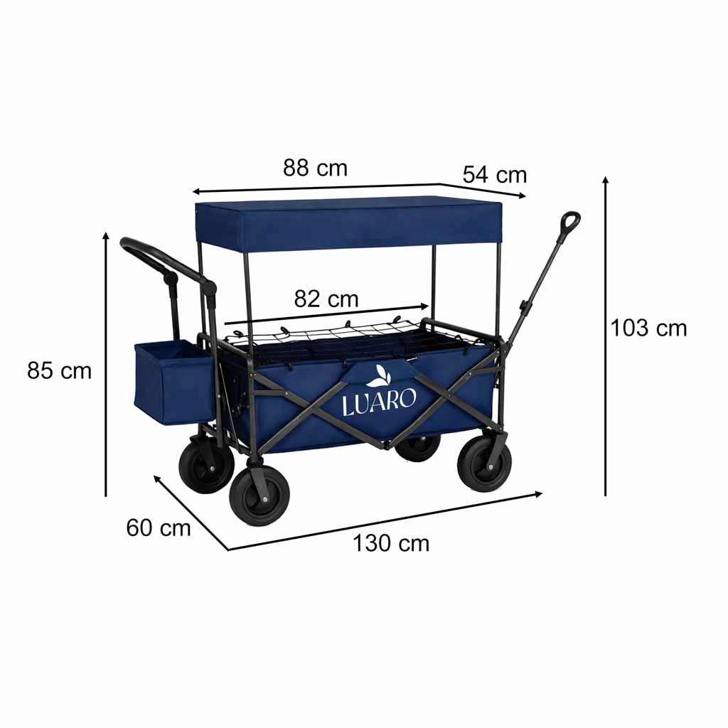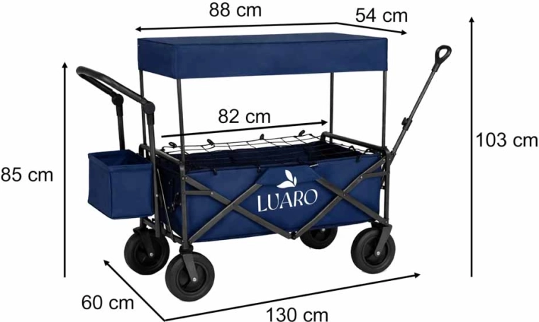 S vozíkem LUARO získáte spolehlivého pomocníka pro rodinné výlety, plážové dny i kempování. Pevný ocelový rám a odolná tkanina Oxford 600D zaručují stabilitu a dlouhou životnost, zatímco velká terénní kola zvládnou písek, trávu i dlažbu. Vozík můžete táhnout i tlačit, a díky výškově nastavitelným rukojetím se pohodlně přizpůsobí vaší postavě.