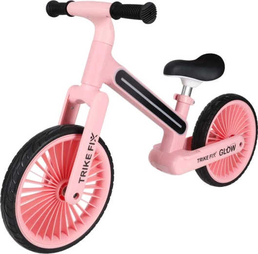 Lehké dětské odrážedlo TRIKE FIX GLOW s podsvětlenou LED rámovou lištou promění učení rovnováhy v zábavu a bezpečí. Díky nízké hmotnosti 3,6 kg, ergonomickému sedlu a bezúdržbovým EVA kolům si děti rychle osvojí jízdu bez postranních koleček, a to s výbornou viditelností za šera.