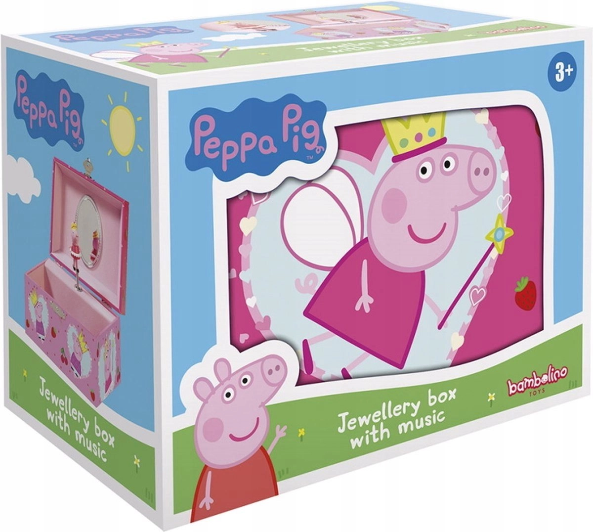 Hledáte milý dárek pro malé princezny? Tato hrací šperkovnice s oblíbeným motivem Prasátko Peppa nadchne každé dítě. Po otevření víčka zazní příjemná melodie a uvnitř se roztančí otáčející se figurka, která promění ukládání drobností v kouzelný rituál.
