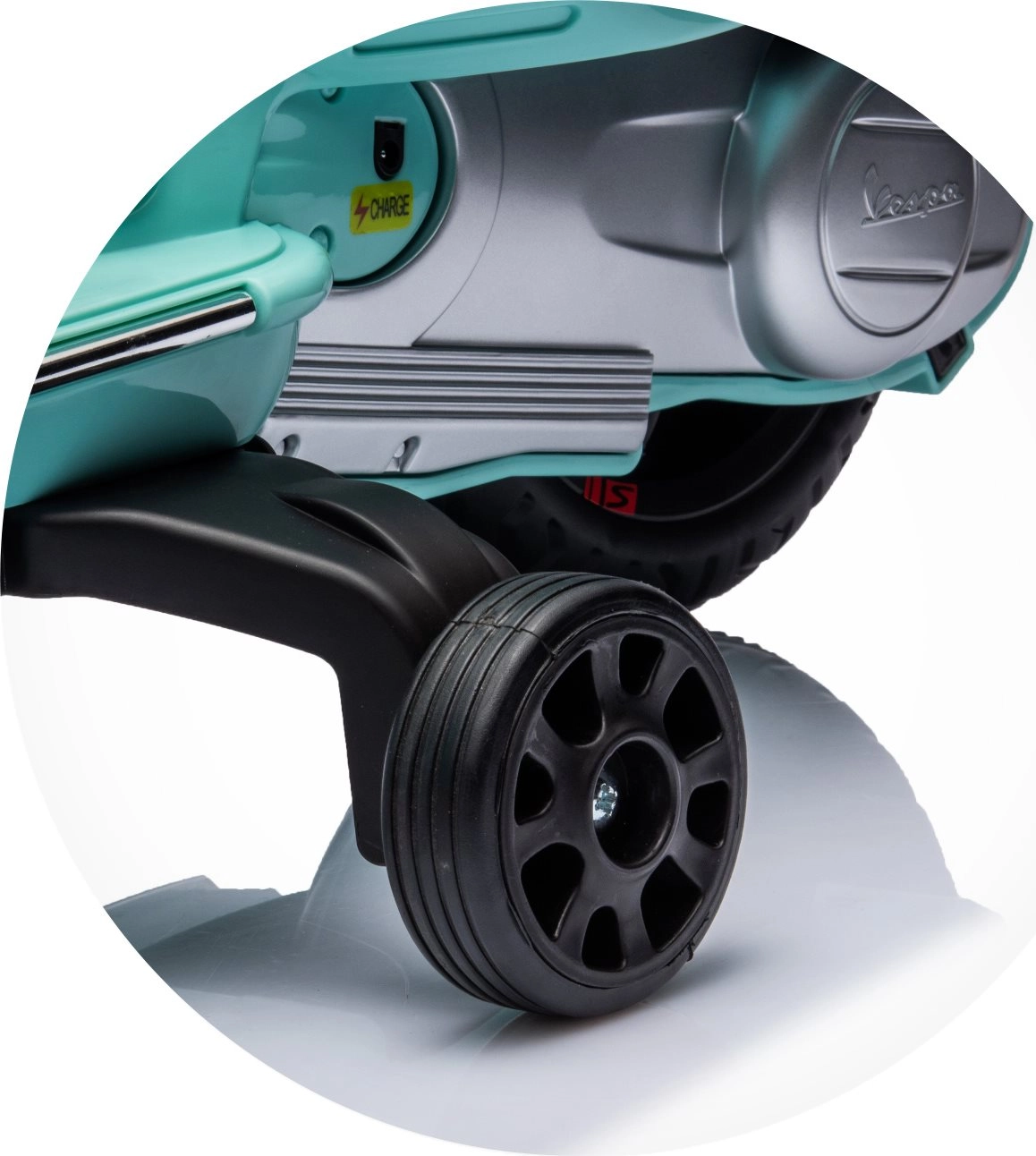 Elektrická motorka ve stylu VESPA GTS přináší dětem bezpečný a zábavný způsob, jak rozvíjet rovnováhu a motoriku. Díky dvojici motorů (2 × 30 W) se rozjíždí plynule a spolehlivě, zatímco stabilizační kolečka pomáhají udržet jistotu v sedle. Přední a zadní LED osvětlení zvyšuje viditelnost a dodává motocyklu autentický vzhled.