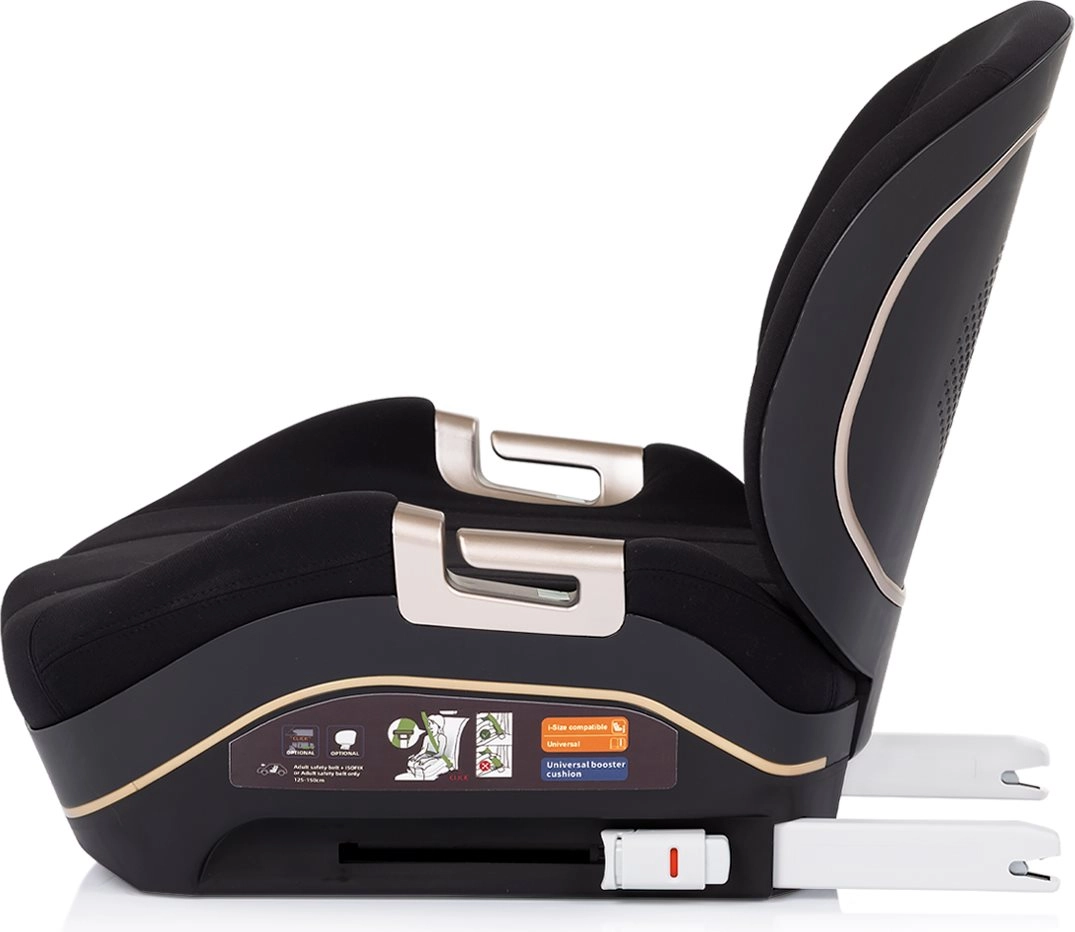 Integrovaná vodítka pásu pomáhají správně vést bezpečnostní pás, čímž snižují riziko chybného použití. Zelené bezpečnostní indikátory ISOFIX vizuálně potvrdí správné zacvaknutí – stačí cvaknout a můžete vyrazit. Elegantní potah se zlatými/stříbrnými detaily doplní interiér vozu a kvalitní zpracování usnadňuje přenášení mezi vozidly bez kompromisů na bezpečnosti.
