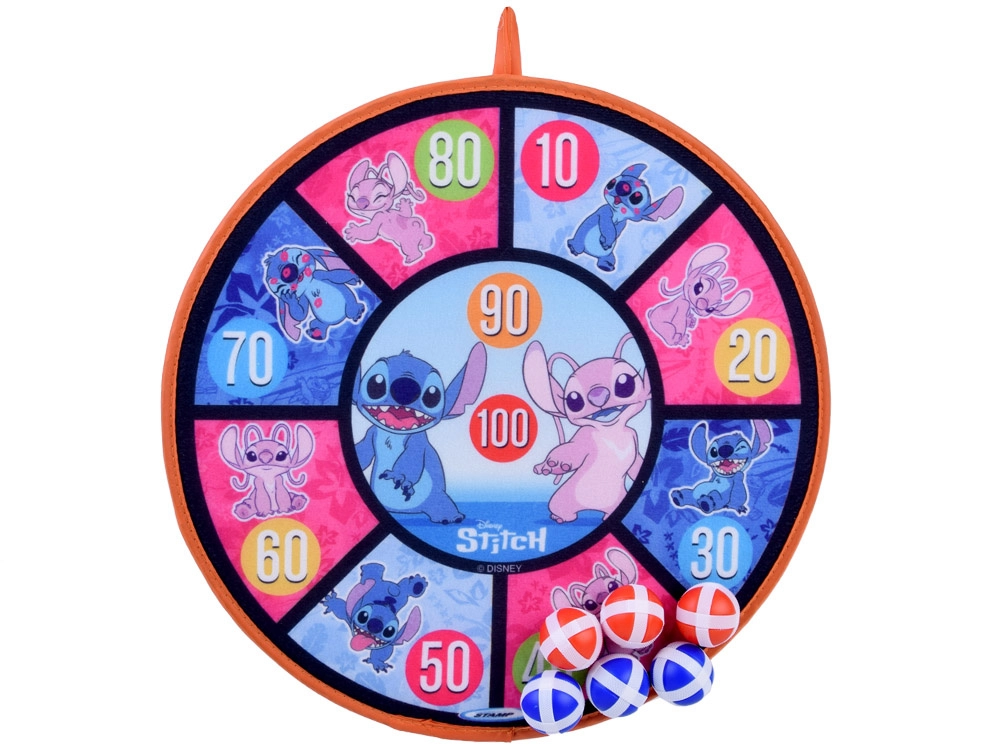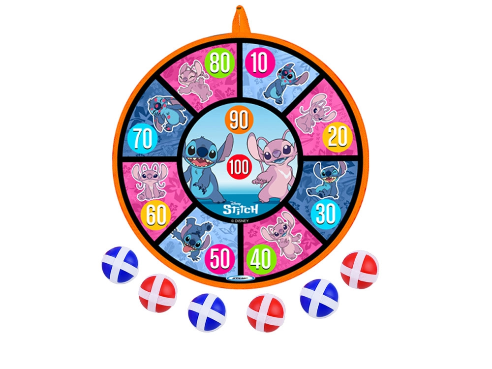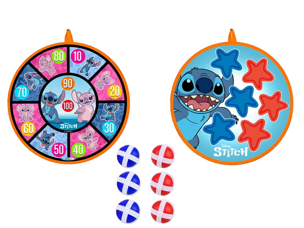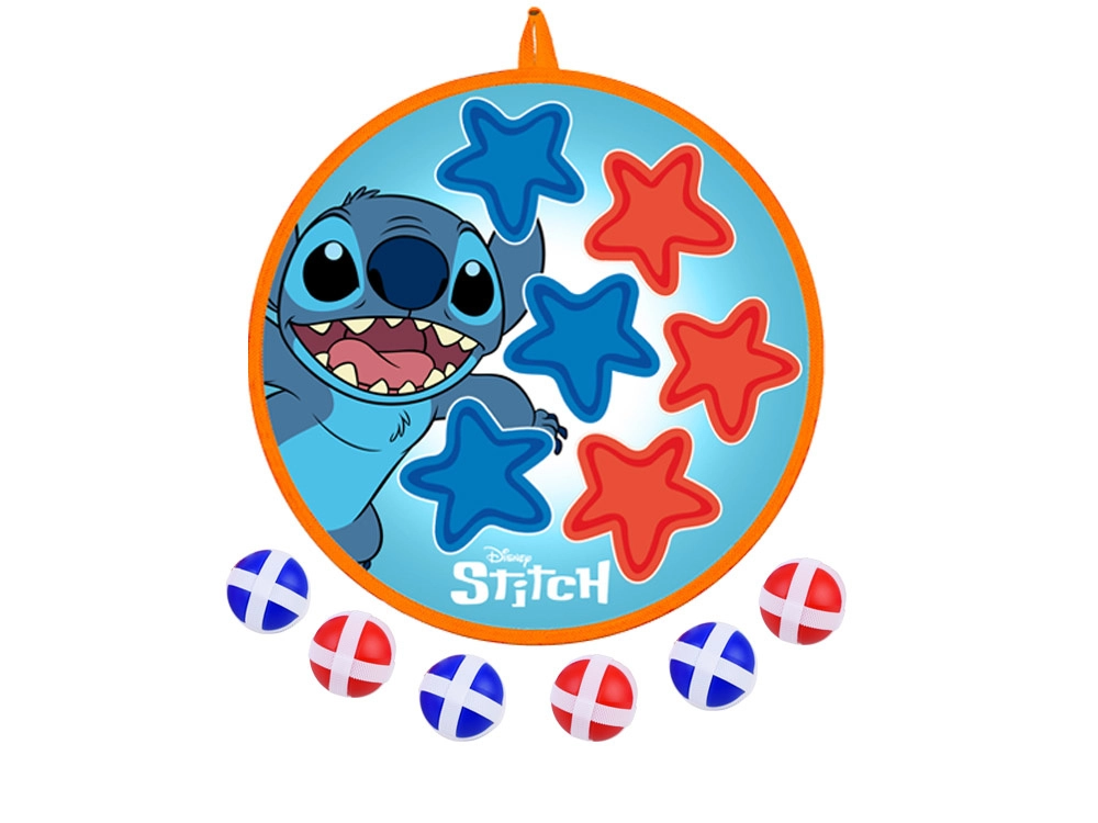 Zábavná a bezpečná hra pro děti s motivem STITCH: oboustranný terč na suchý zip o průměru 36 cm a 6 lehkých míčků (4 cm). Podporuje koordinaci ruka–oko, přesnost a aktivní pohyb doma i venku. Měkké míčky se snadno přichytí k povrchu a terč lze zavěsit na stěnu, dveře nebo na zahradě.