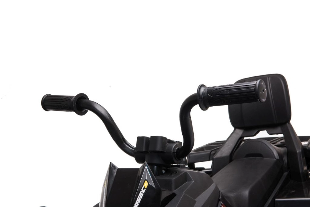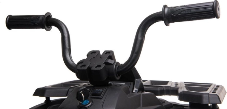 Komfort zajišťuje sedlo s opěrkou, ergonomická protiskluzová řídítka a široké stupačky pro jistý posed. Přední nárazník chrání karoserii a dodává čtyřkolce odolný vzhled. Ideální volba pro děti, které milují akci a styl.