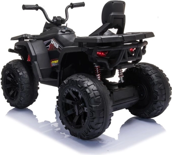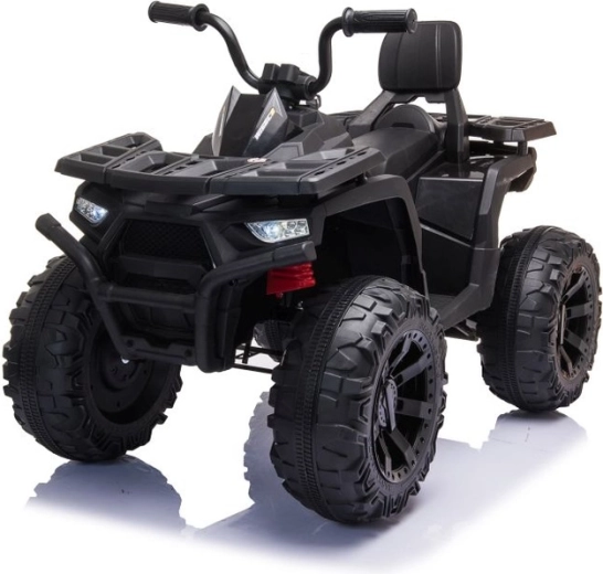 Robustní dětská elektrická čtyřkolka v elegantní černé barvě nabízí široké terénní pneumatiky, stabilní čtyřkolový podvozek a svítící LED světlomety pro realistickou jízdu. Ideální pro malé dobrodruhy – pohodlné sedlo s opěrkou, bezpečné ovládání a silný vzhled do terénu potěší každé dítě.