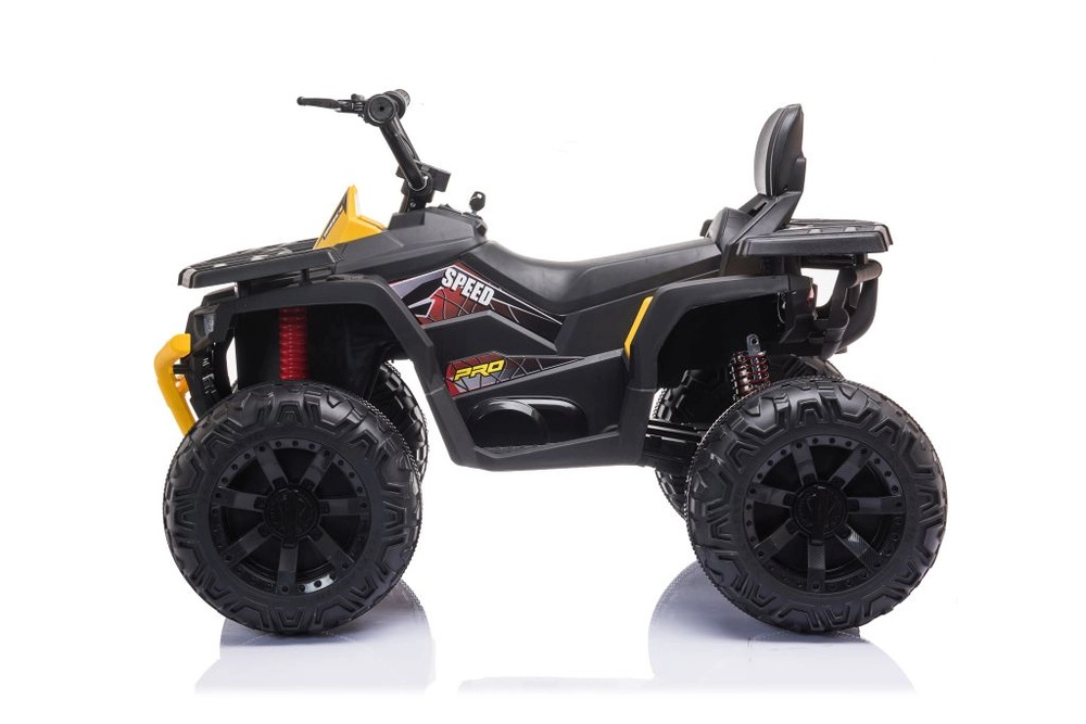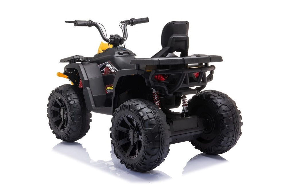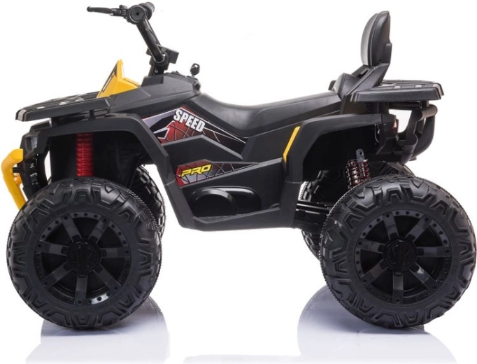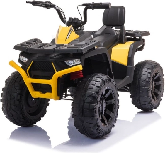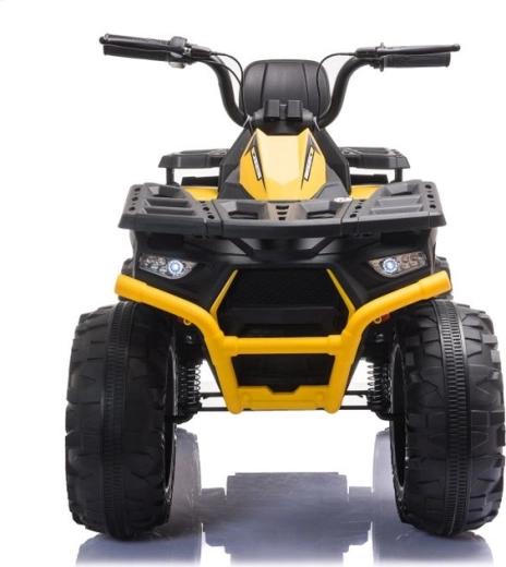 Stylová dětská elektrická čtyřkolka v žluté barvě nabízí robustní off-road vzhled, široká terénní kola pro stabilitu a pohodlné sedlo s opěrkou. Ideální pro malé dobrodruhy – jednoduché ovládání řídítky, bezpečné stupačky a realistické LED prvky pro ještě větší zábavu.