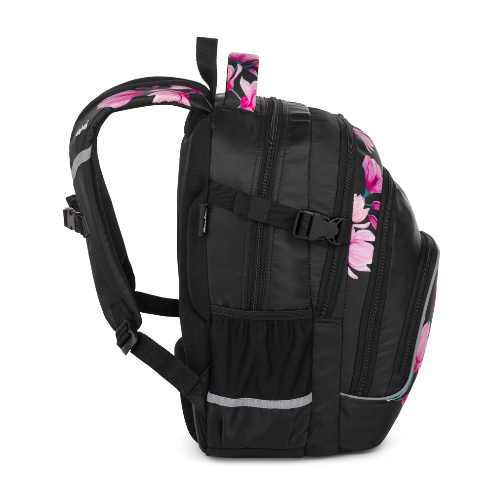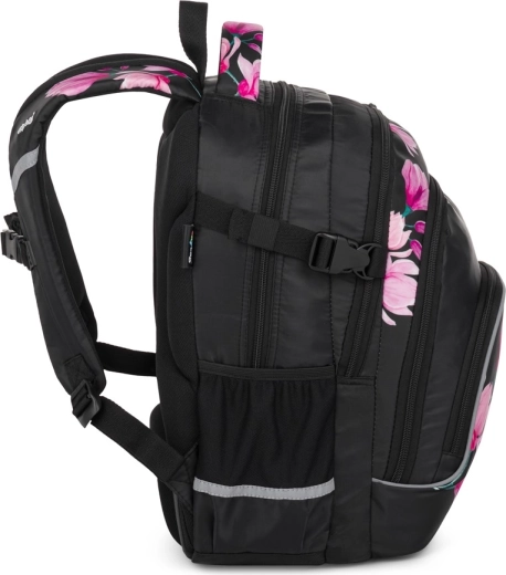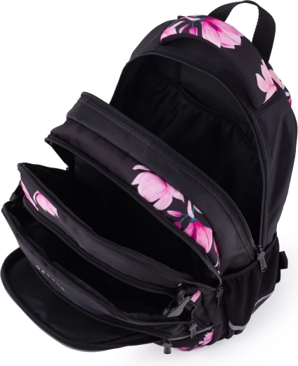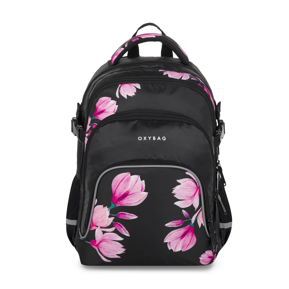 OXYBAG Scooler Magnolie je spolehlivý parťák do školy i na volný čas. Tři prostorné komory pojmou učebnice, sešity i svačinu, přední kapsy s organizérem udrží pořádek v drobnostech a vnitřní přihrádka ochrání váš notebook. Boční kapsa je ideální na láhev s pitím, zatímco praktický držák na klíče nebo čip šetří čas při každodenním hledání.