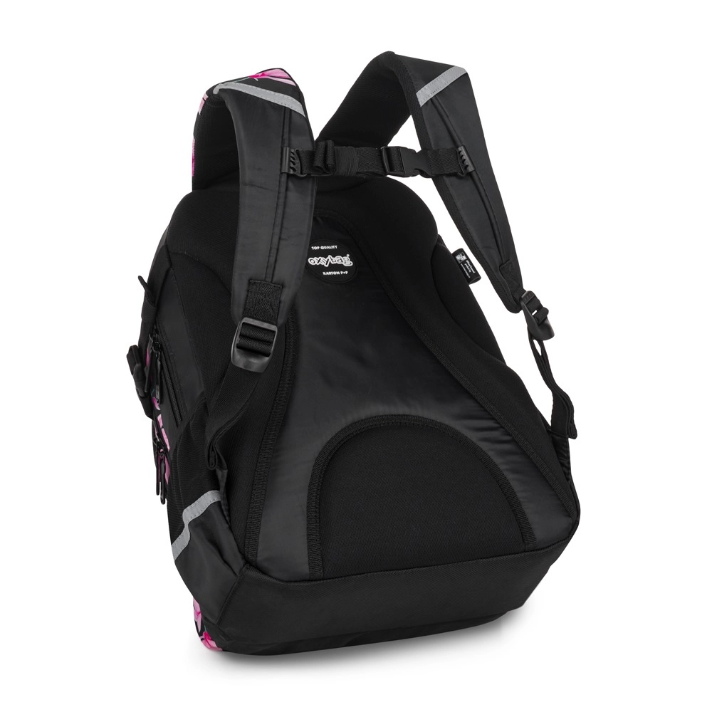 Pro komfortní nošení je batoh vybaven anatomicky tvarovanými prodyšnými zády, nastavitelnými ramenními popruhy a hrudním popruhem, díky nimž skvěle sedí i při delší cestě. Zpevněné nepromokavé dno chrání obsah před vlhkostí a špínou a reflexní prvky zvyšují viditelnost dětí na cestě do školy i domů.