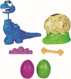 Pomozte malému brontovi dostat se z vajíčka a sledujte, jak mu roste krk! Stačí naplnit figurku PLAY-DOH a stisknout ocas – krk se vysune a zábava může začít. Díky formičkám na figurce a vajíčku vytvoříte listy, květiny, kosti i stylový motýlek.