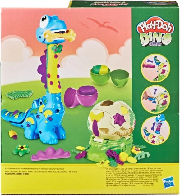 Objevte zábavu s kreativní sadou PLAY-DOH, ve které se malý brontosaurus vylíhne z vajíčka a jeho krk se kouzelně prodlužuje! Děti mohou dinozdobit listy, květinami, kostmi i vtipným motýlkem. Součástí jsou 2 vajíčka s netoxickou plastelínou PLAY-DOH ve 3 barvách – ideální pro rozvoj fantazie a jemné motoriky dětí od 3 let.
