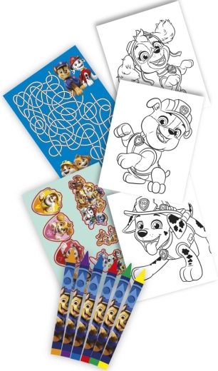 Součástí balení je také šest barevných voskovek s papírovým obalem a arch samolepek, které dodají výtvorům osobitý styl. Barevné balení s výrazným motivem hlavního psa z Tlapkové patroly zaujme na první pohled a láká k tvoření doma i na cestách.