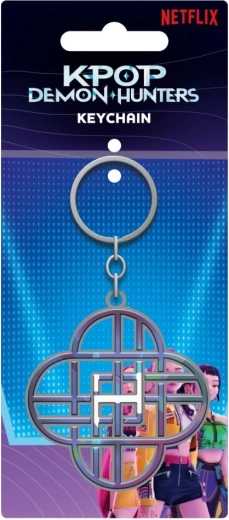 Tato oficiálně licencovaná klíčenka K-pop Demon Hunters kombinuje kvalitní zpracování s jedinečným vizuálním stylem série. Kovové tělo se složitým geometrickým vzorem připomínajícím kříž či čtyřlístek působí čistě a elegantně, zároveň však dostatečně výrazně, aby okamžitě zaujalo.