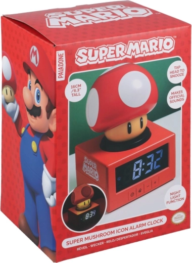 Oživte dětský pokoj nebo herní koutek originálním budíkem inspirovaným světem Super Mario. Design s červenou čepicí a bílými puntíky věrně kopíruje ikonickou houbu, takže skvěle ladí do sbírky i jako praktická dekorace.