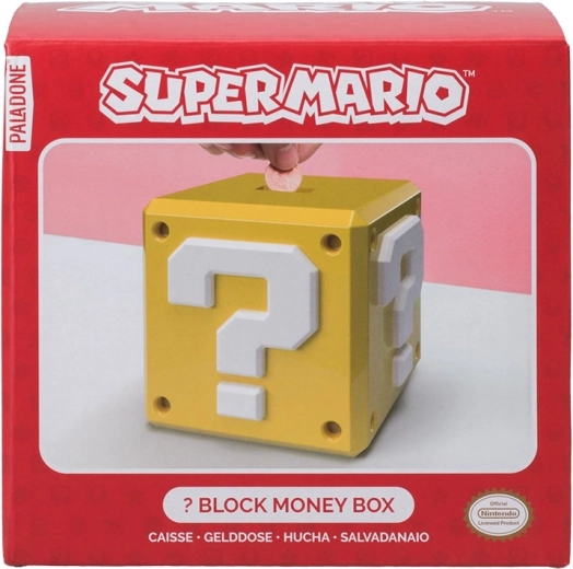 Stylová pokladnička inspirovaná herní sérií Super Mario ve tvaru ikonického Question Block. Odolný plast, praktický otvor na mince shora a spodní dvířka pro snadné vyjmutí úspor. Ideální jako dekorace, dárek pro fanoušky i každodenní spoření.