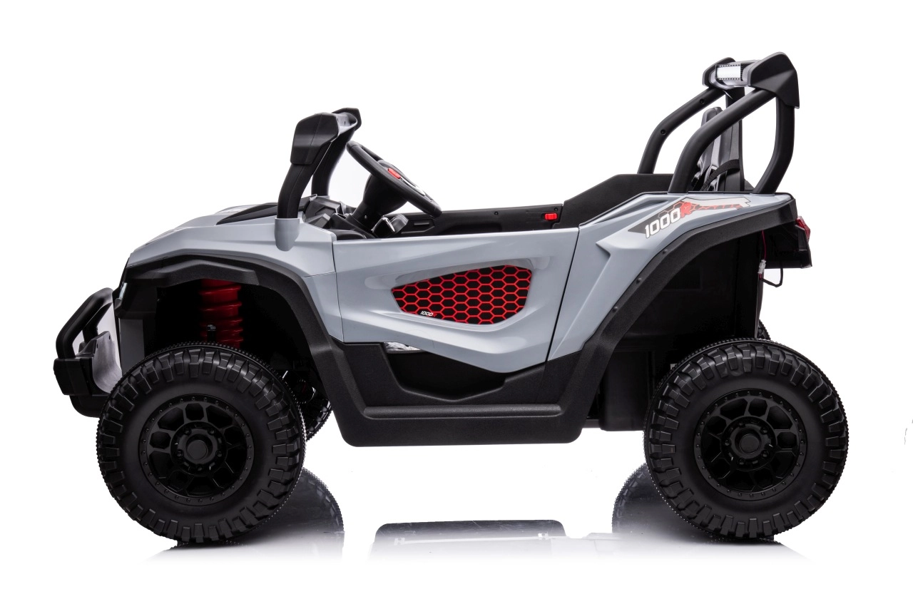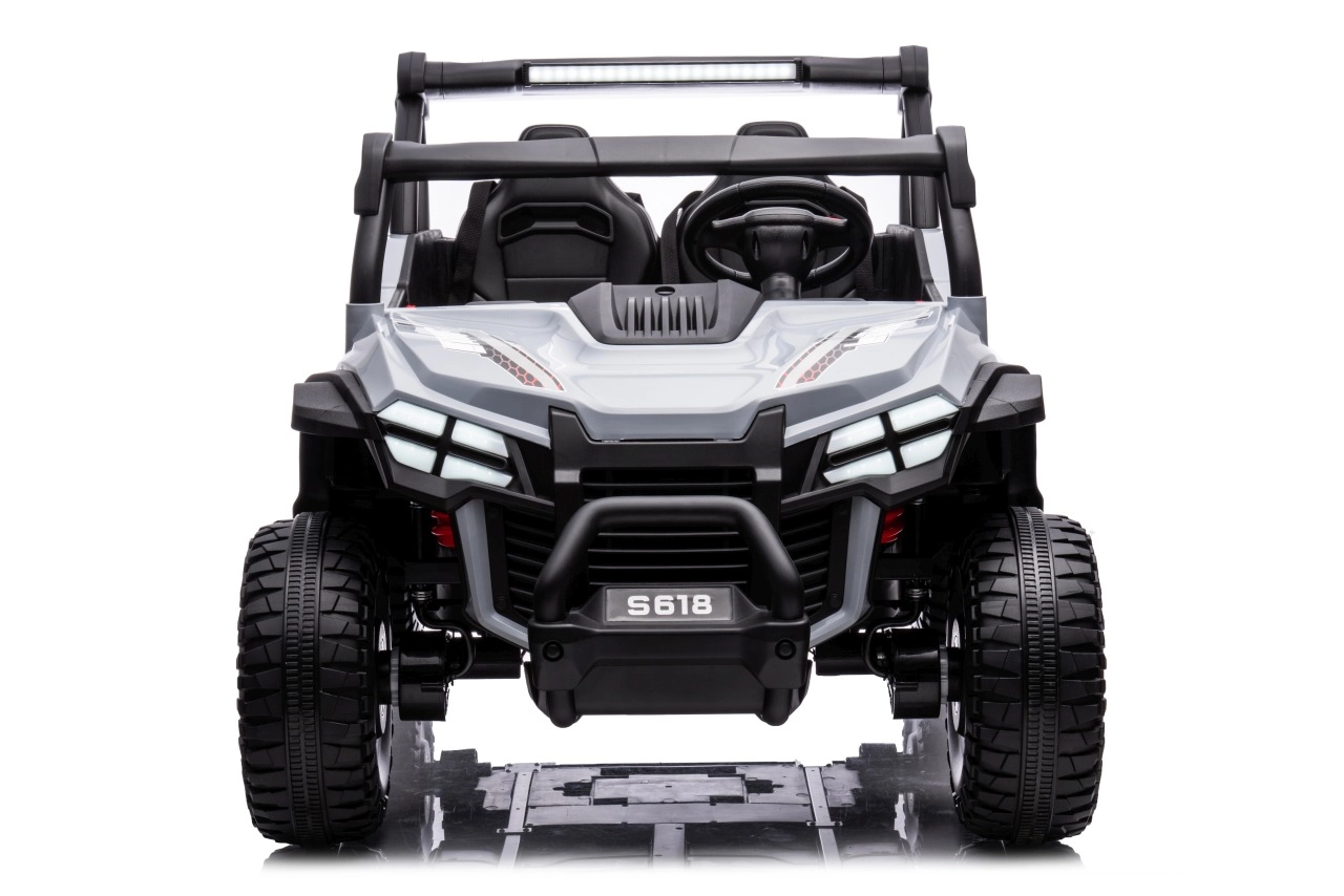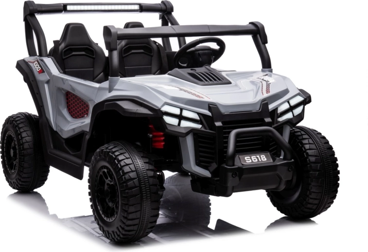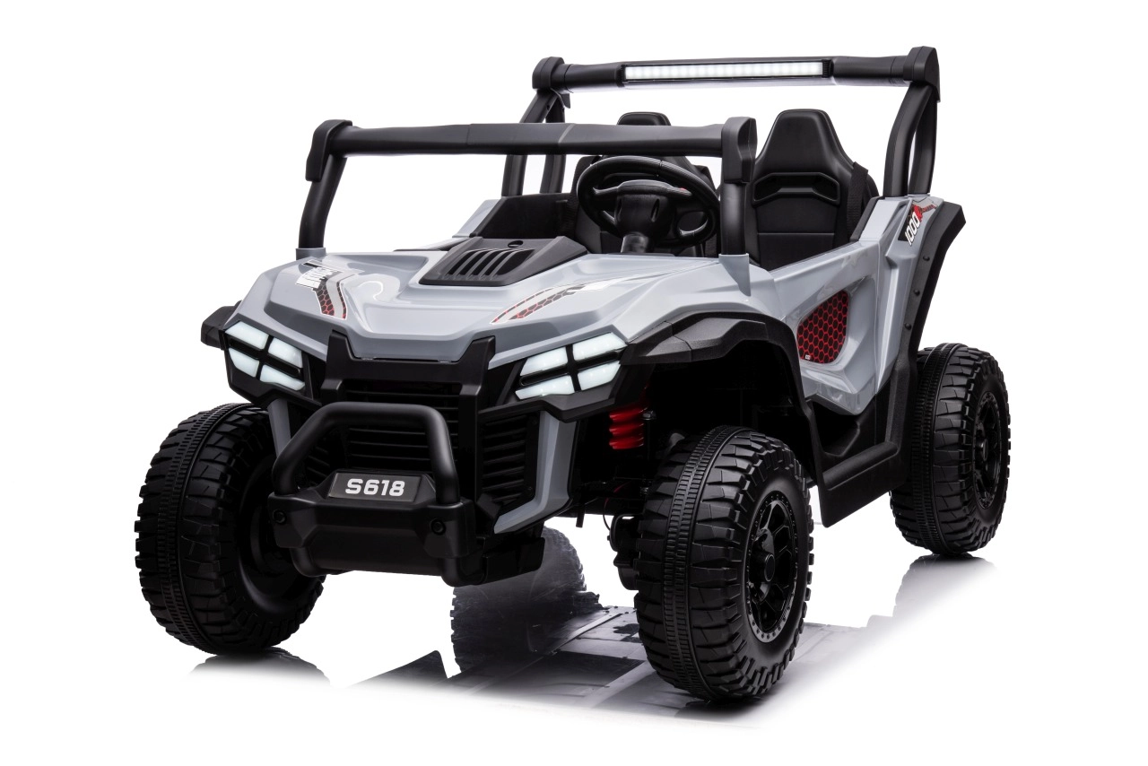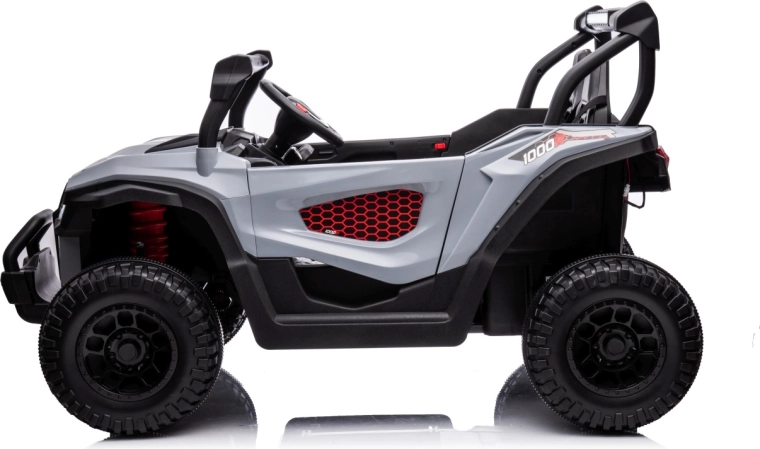 Buggy Gravity 4x4 je skvělé dvoumístné vozítko pro malé dobrodruhy. Vysoký podvozek s průchodností až 17 cm, zadní odpružení a velká EVA kola (34 × 13 cm) se postarají o pohodlnou jízdu i mimo zpevněné cesty. Plynulý rozjezd, volba vpřed/vzad a 2 rychlosti dělají řízení intuitivní a zábavné.