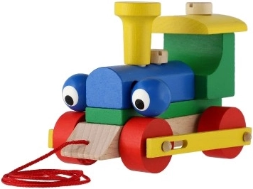 - Dřevěná tahací mašinka s montážními díly