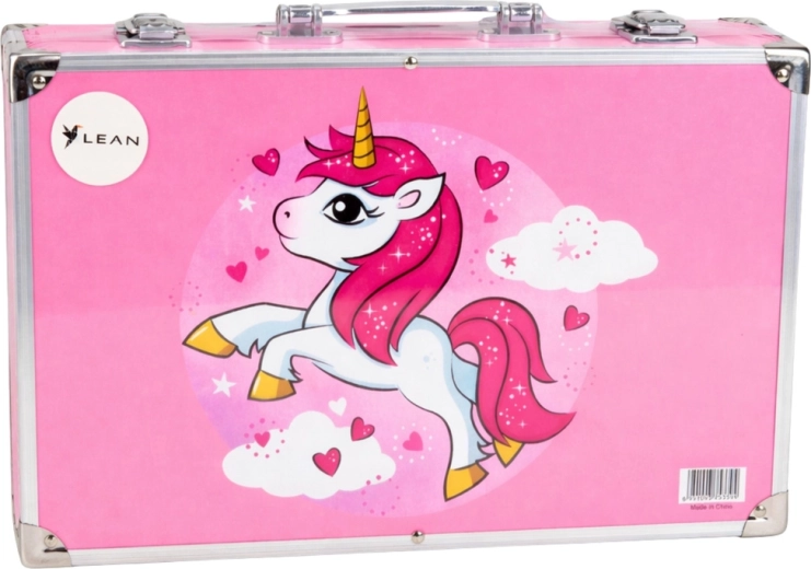 Růžový kufřík s roztomilým jednorožcem nadchne malé umělce a motivuje je k tvorbě. Je ideální jako dárek a skvěle se hodí na domácí tvoření i výtvarnou výchovu.