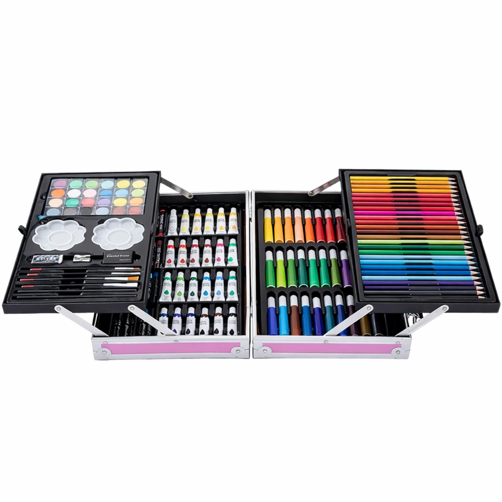 - 150dílná výbava – pastelky, fixy, pastele, barvy, štětce a další doplňky