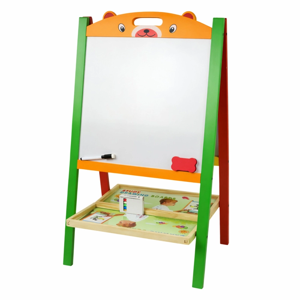 Objevte zábavnou cestu k učení s touto dřevěnou oboustrannou tabulí 2v1 – z jedné strany magnetická bílá plocha pro psaní mazacím fixem a skládání písmenek a číslic, z druhé klasická křídová tabule pro kreslení. Stabilní dřevěná konstrukce, bohaté příslušenství a učení hrou podporují jemnou motoriku, kreativitu a první matematické i jazykové dovednosti.