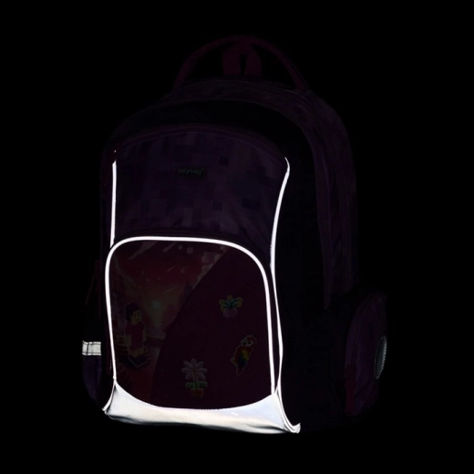 Pevné nepromokavé dno chrání obsah před vlhkostí a ušpiněním, reflexní prvky zvyšují viditelnost při cestě do školy. Set doplňuje praktický sáček na cvičky se stahováním na šňůrky a přehledný jednopatrový penál se dvěma chlopněmi a poutky na psací potřeby.