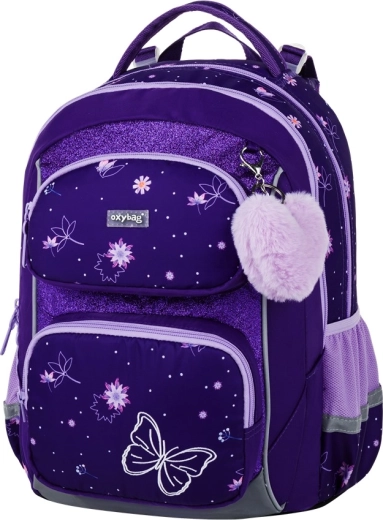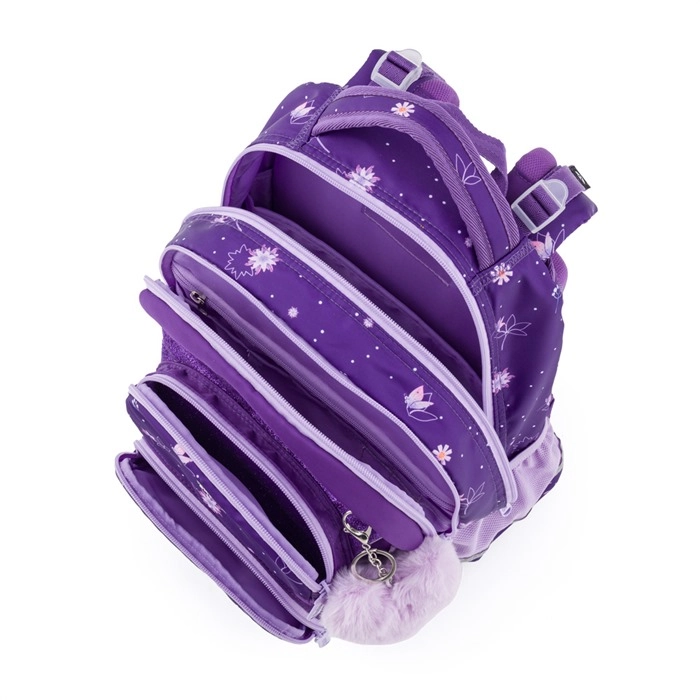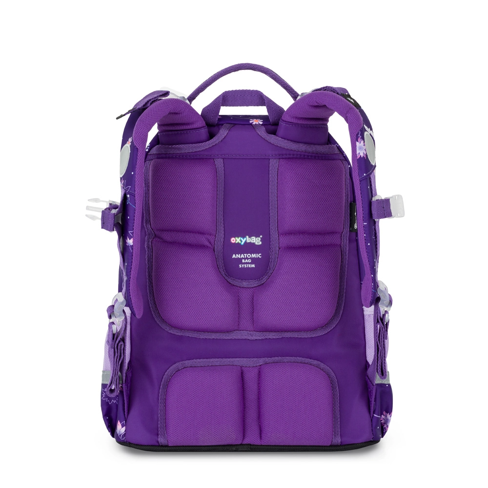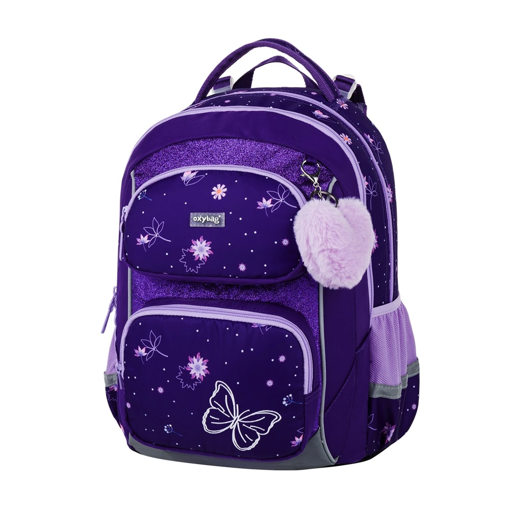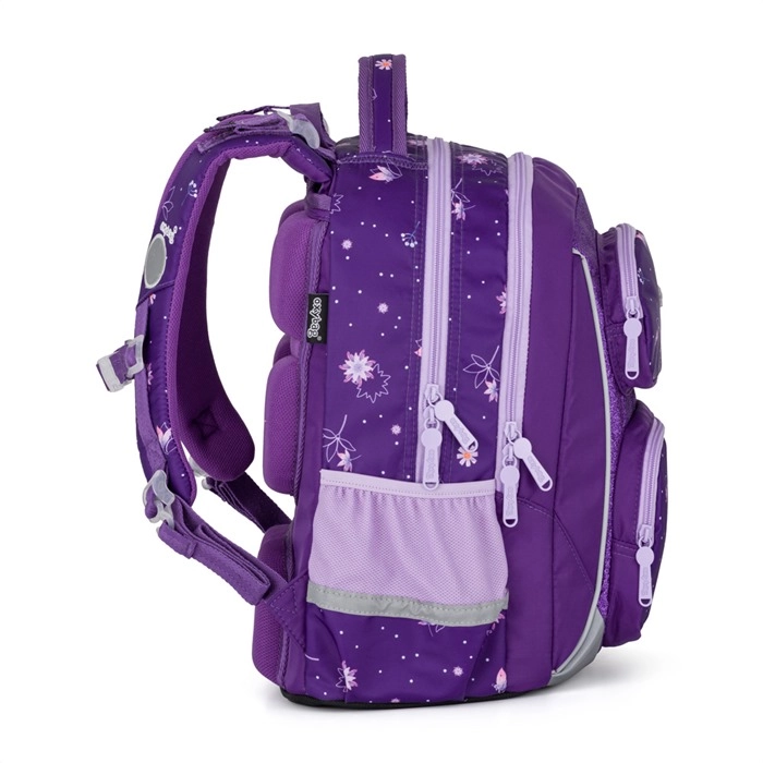 Školní set OXY Jumper Flowers je navržen pro pohodlné každodenní nošení a přehlednou organizaci školních potřeb. Dvě prostorné komory pojmou učebnice i sešity, přední kapsa je ideální na svačinový box a boční síťované kapsy udrží láhev vždy po ruce. Ergonomicky tvarovaný zádový panel a odpružené ramenní popruhy s hrudním popruhem rozkládají zátěž a zvyšují komfort.