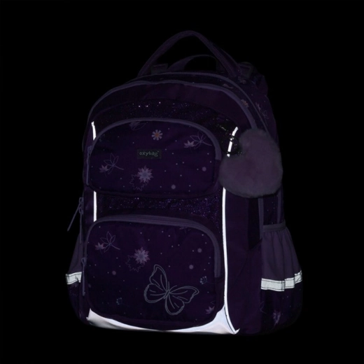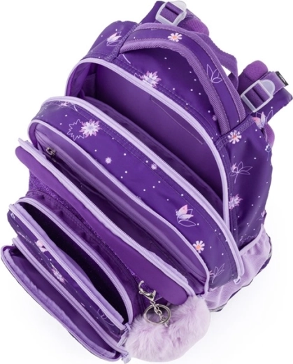 Bezpečnost podporuje množství reflexních prvků, odolnost pak zpevněné, nepromokavé dno a kvalitní zipy. Set doplňuje jednopatrový penál pro přehledné uložení psacích potřeb a lehký sáček na cvičky ve stejném květinovém designu. Ideální volba pro první i druhý stupeň základní školy.