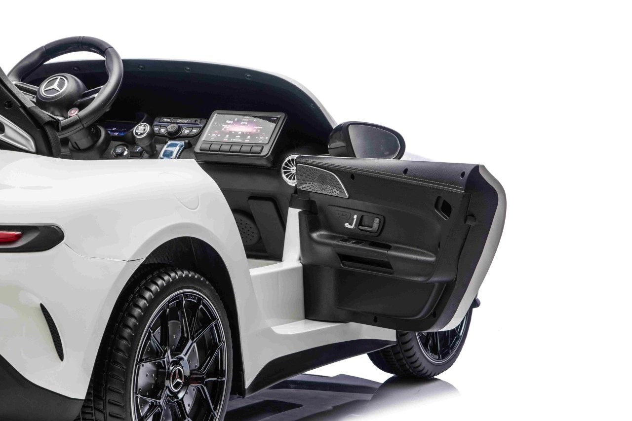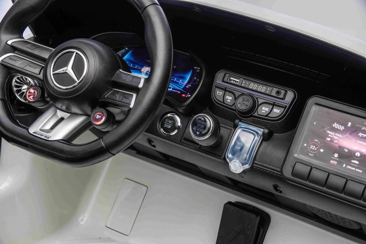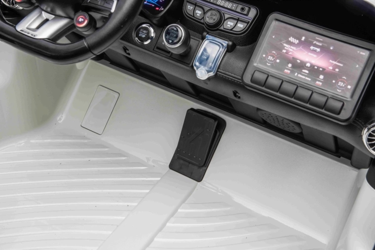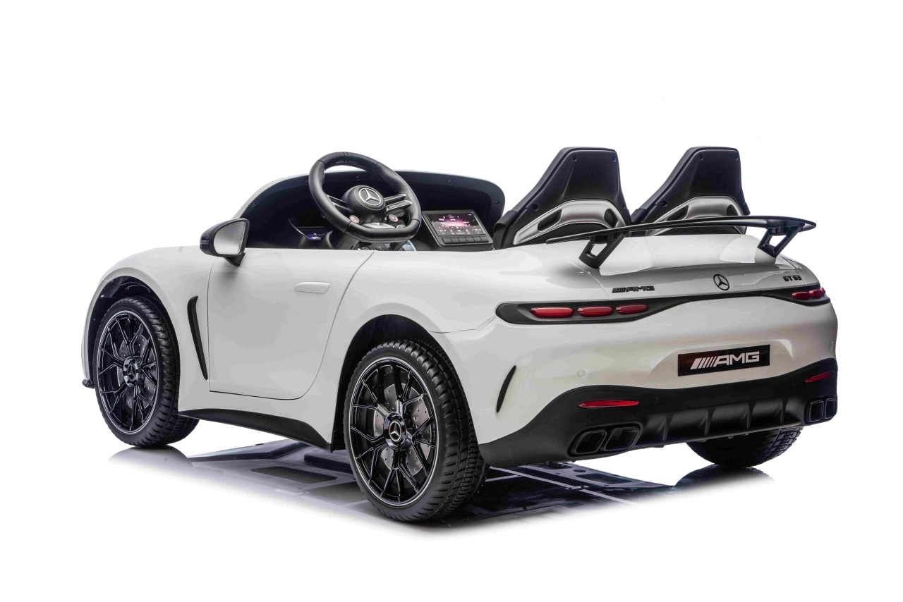 Mercedes-Benz GT63 AMG v dětském provedení přináší špičkový výkon a prémiové zpracování. Díky pohonu 4x200 W a baterii 24 V / 7 Ah si děti užijí dynamickou, ale bezpečnou jízdu s plynulým rozjezdem. Rozměrná karoserie (146 × 86 × 57 cm) nabízí dvojité sedadlo z ekokůže s bezpečnostními pásy a otevíracími dveřmi pro snadné nastupování.