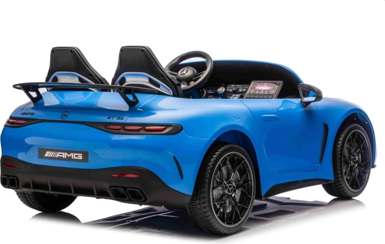 Splněný sen malých řidičů: elektrické autíčko MERCEDES-BENZ GT 63 AMG v elegantní modré barvě kombinuje sportovní vzhled s silným výkonem a špičkovou výbavou. Čtyři motory o výkonu 200 W každý a baterie 24 V / 7 Ah zajistí plynulou jízdu, zatímco zadní odpružení a měkká EVA kola 27×9 cm se postarají o komfort i na nerovném povrchu.