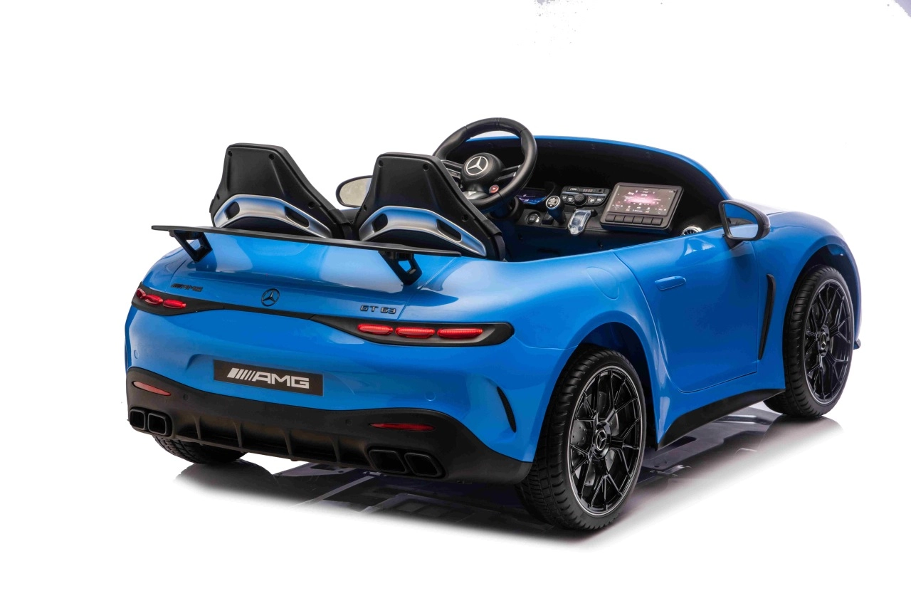 Stylové dětské elektrické autíčko inspirované modelem MERCEDES-BENZ GT 63 AMG nabídne výkonný pohon 4x200 W, baterii 24 V / 7 Ah, dvoumístné sezení z eko kůže a otevírací dveře. Pro maximální zábavu nechybí LED světla, FM rádio, USB/MP3/Bluetooth/AUX a bezpečné ovládání pomocí 2,4GHz dálkového ovladače s tlačítkem nouzového zastavení.