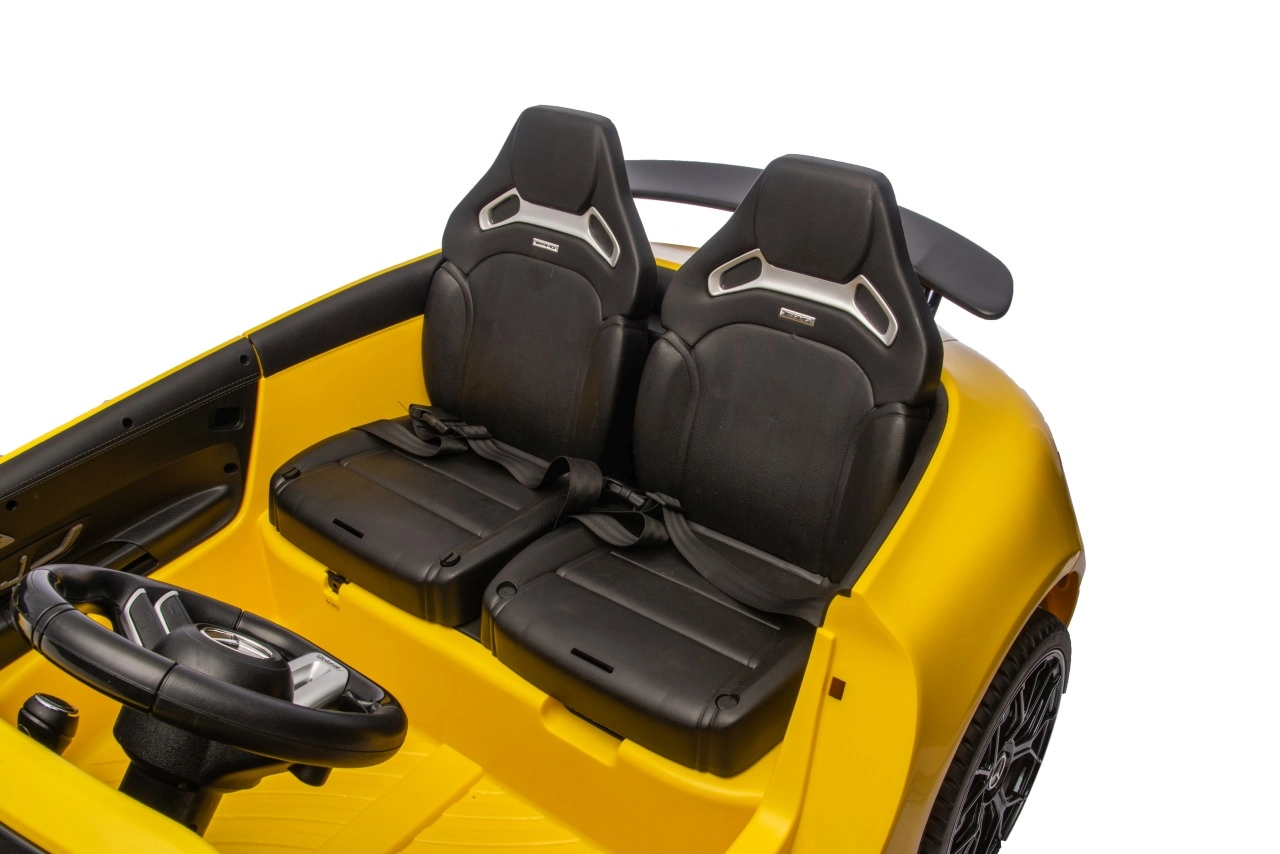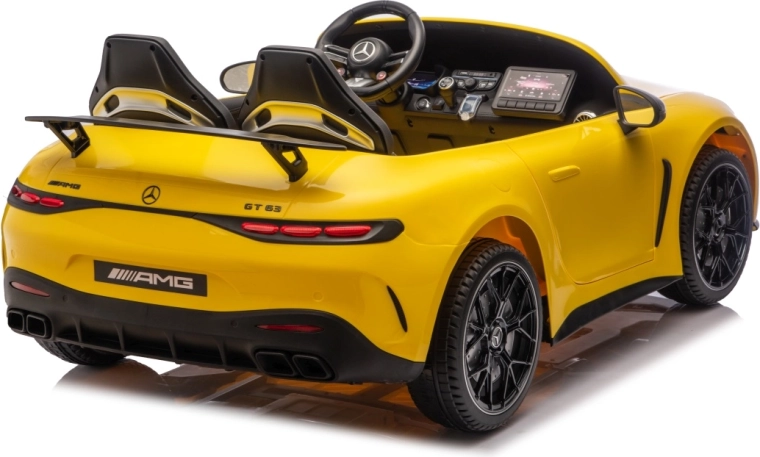 Splňte dětský sen o sportovním voze s licencovaným vzhledem MERCEDES‑AMG GT63. Silná 24V sestava se čtyřmi motory 200 W zajistí plynulé rozjezdy, dostatek síly do mírných nerovností a dlouhou zábavu. Komfort podporují pěnová kola EVA (27×9 cm) a zadní odpružení, díky nimž je jízda tišší a pohodlnější.
