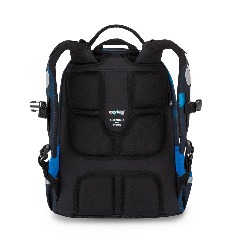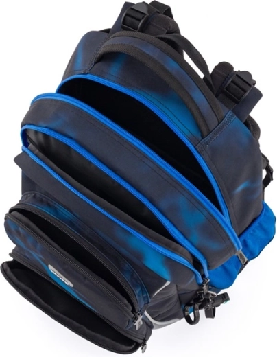 Anatomicky tvarovaný zádový panel a odpružené ramenní popruhy s hrudním páskem zajišťují pohodlí i při vyšším zatížení školními potřebami.