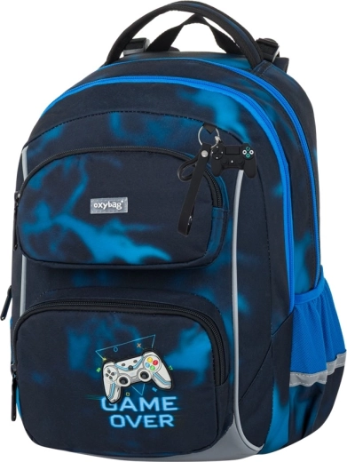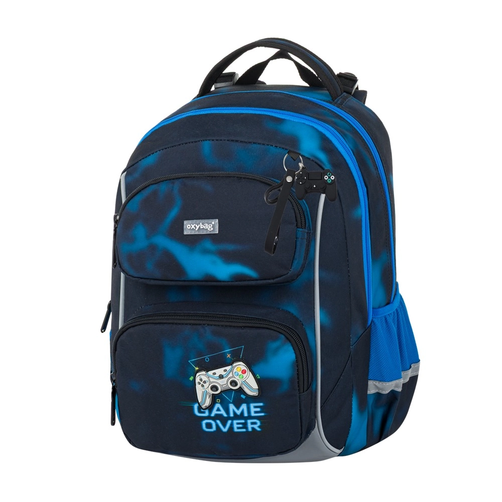 Školní set OXY Jumper Gamer 3v1 je navržen pro každodenní pohodlí a bezpečnost dětí na prvním stupni. Robustní batoh s herním motivem disponuje dvěma komorami pro učebnice a sešity, přehlednou přední kapsou na svačinový box a otevřenými bočními kapsami na láhev. Díky anatomicky tvarovaným zádům, odpruženým a nastavitelným ramenním popruhům, přítažným popruhům a hrudnímu pásu zajišťuje batoh správné rozložení váhy a pohodlné nošení.